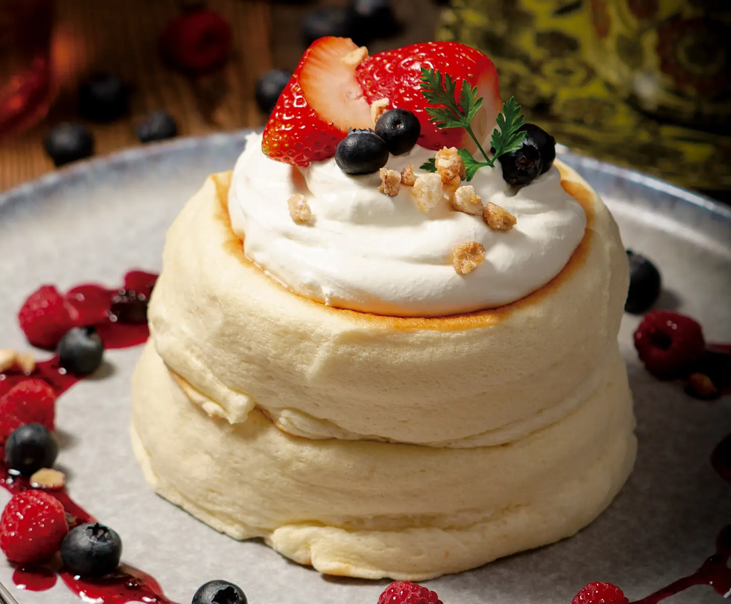 Coco-Fionaのパンケーキは、長野県内の養鶏場から直接仕入れた厳選卵を使用し、気温や湿度に合わせた繊細な焼き加減で仕上げられています。その結果、ふわりととろける食感とやさしい甘さが広がる特別な一皿となっています。